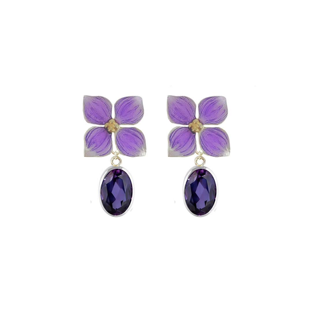 Ametist Taşlı Mor Ortanca Küpe