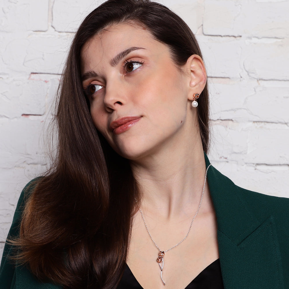 50 cm gümüş üzeri rose altın kaplama zincir kullanılmıştır.