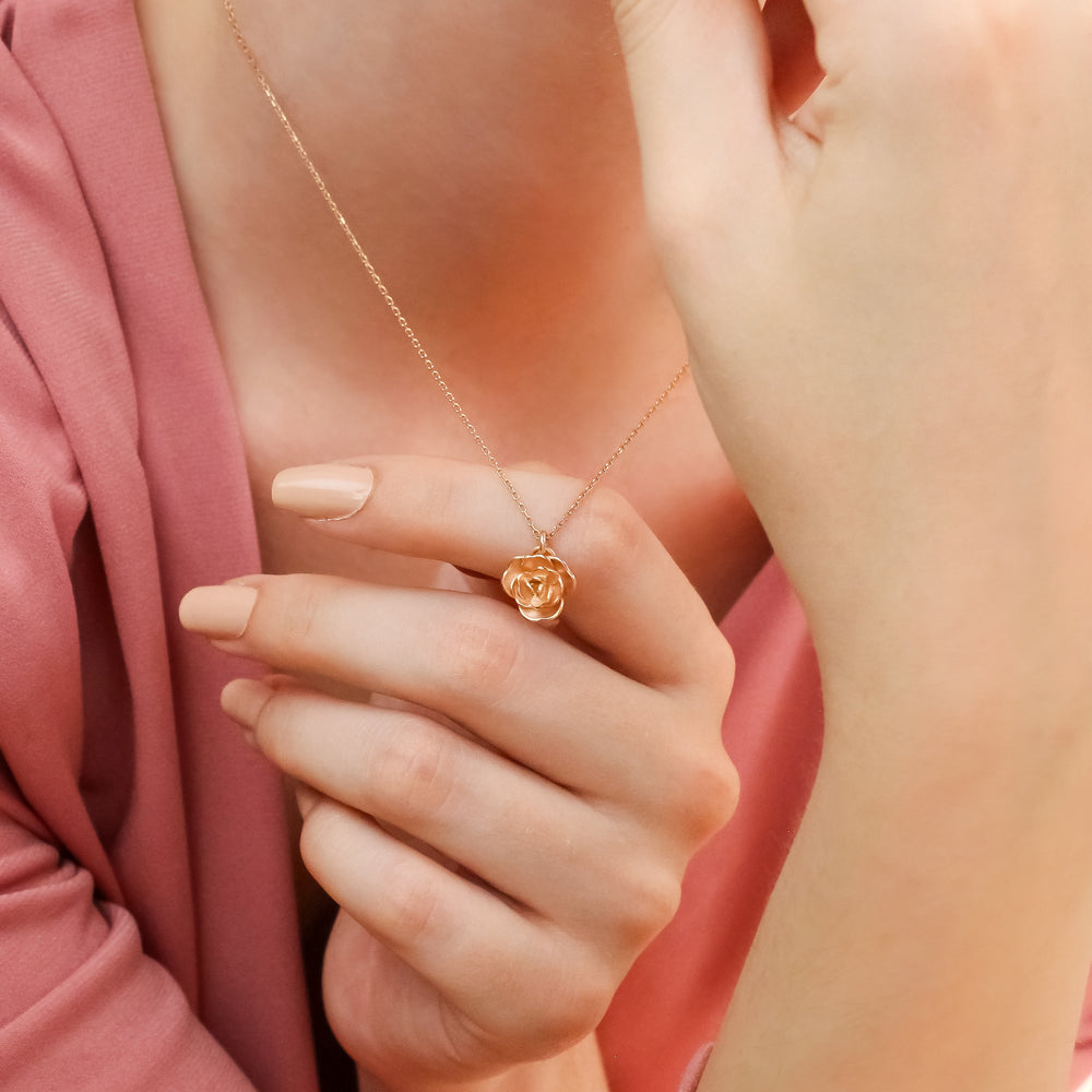 45 cm gümüş üzerine rose kaplama zincir kullanılmıştır.