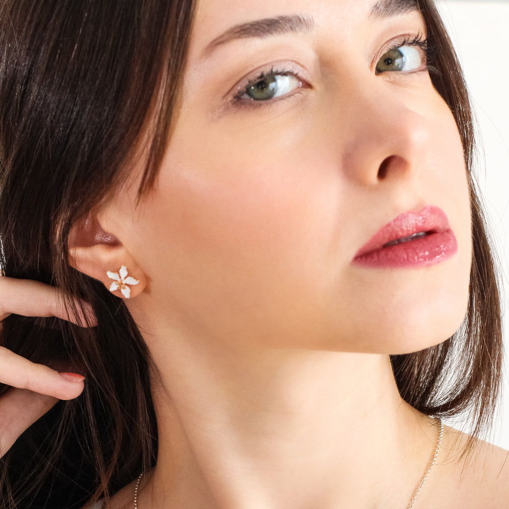 Çiçek figürü rose altın kaplama ve beyaz mine ile renklendirilmiştir.