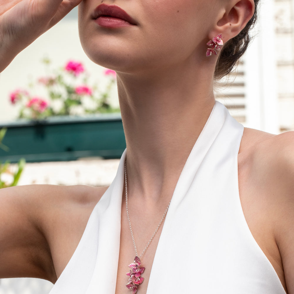 Begonvil, canlı renkleri ve güçlü görüntüsüyle aşkı ve tutkuyu simgeler. Yaz mevsiminin vazgeçilmezi olan, çeşitli renkleriyle doğayı tamamlayan begonvil, koleksiyonumuzda yer verdiğimiz parlak pembe rengiyle yazın neşesini, tutkusunu ve canlılığını yansıtıyor.