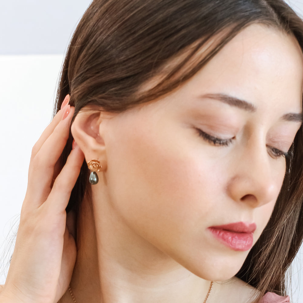 Siyah İncili Gül Küpe