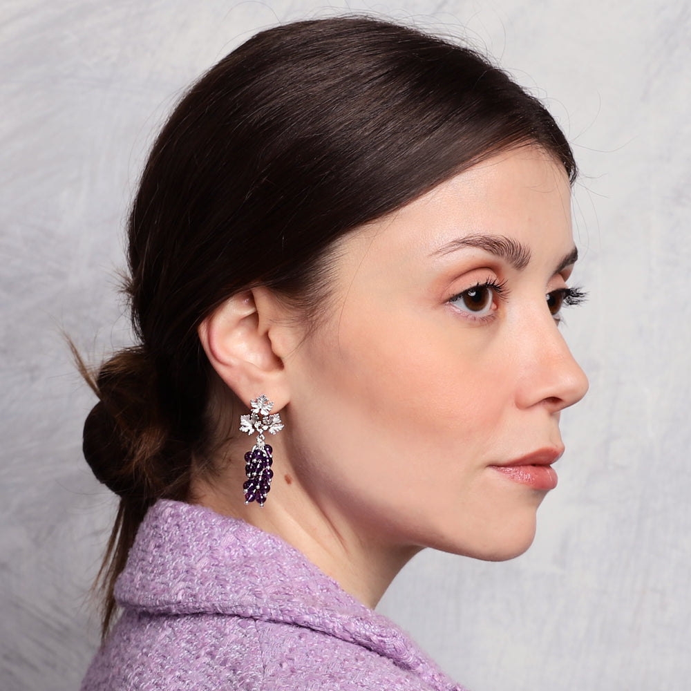Salkım formunda gerçek ametist taşlar kullanılmıştır.