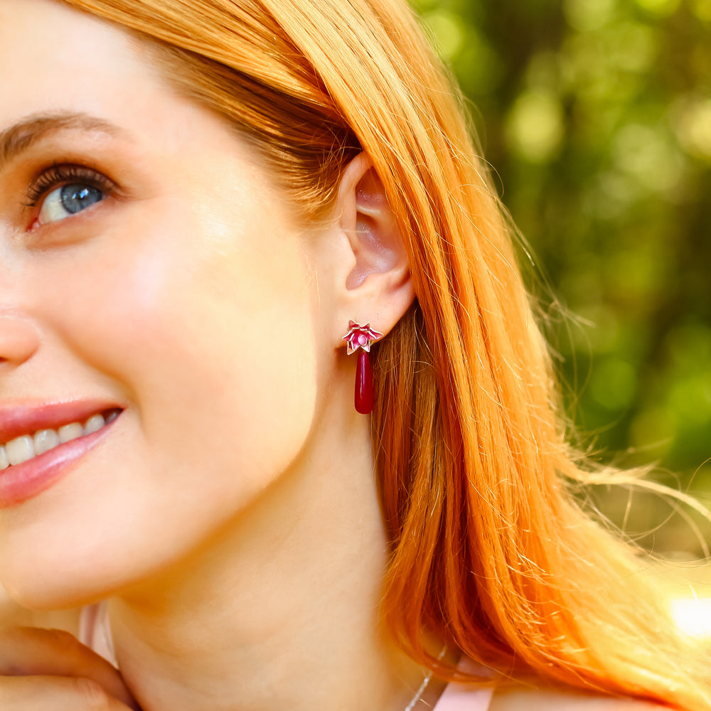 Pembe Ceyt Taşlı Nilüfer Küpe