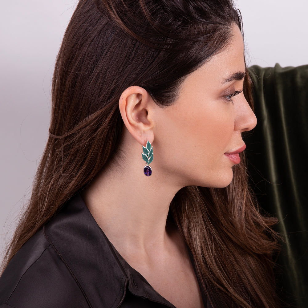 Ametist Taşlı Zeytin Yaprakları Küpe