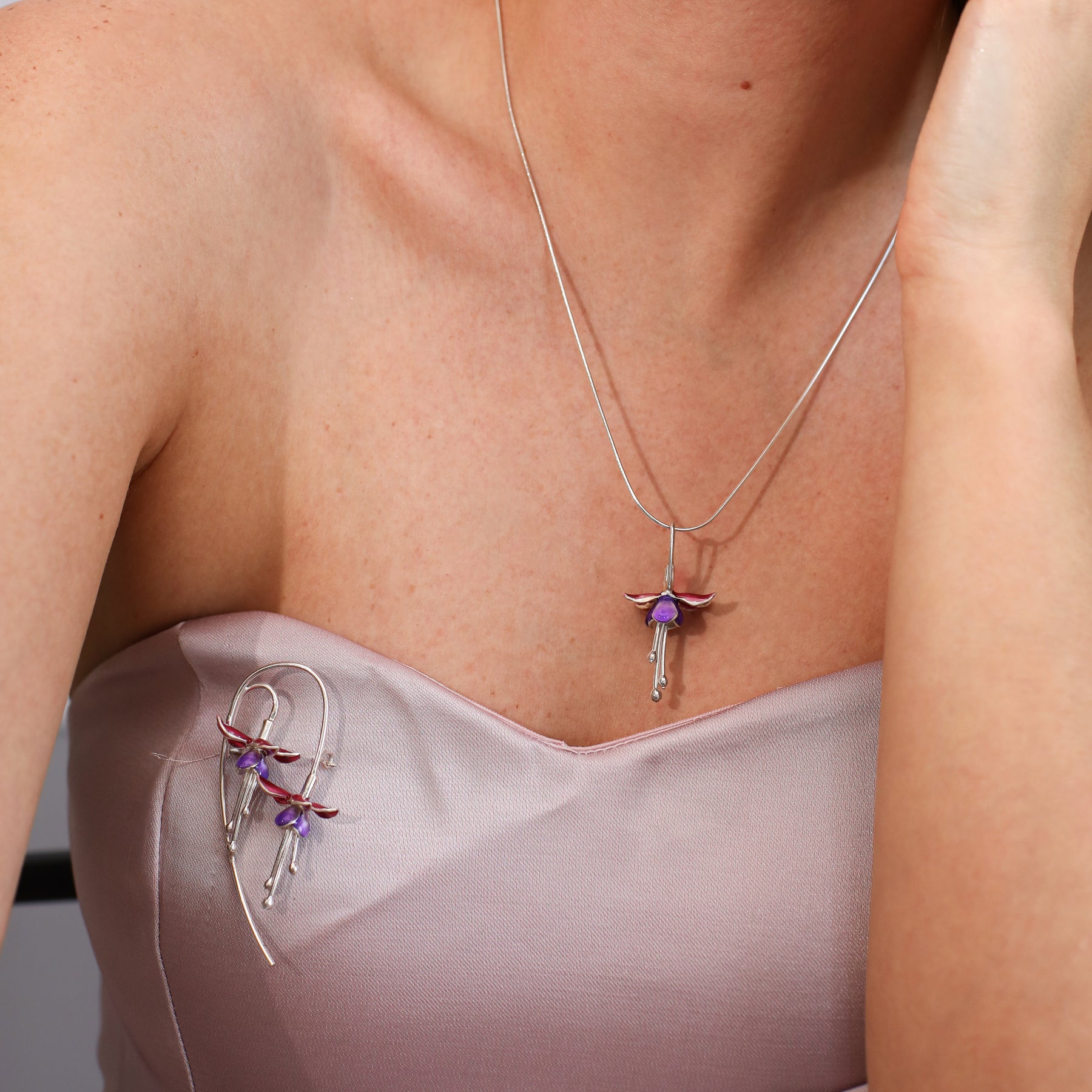 Fuşya diğer adıyla küpe çiçeği. Koleksiyonda, doğanın en narin ilham kaynaklarından biri olan küpe çiçeği tasvir edilmiştir. Sarkık çiçek yapısıyla, sessiz bir güzelliğin, ince bir sevginin ve capcanlı renkleriyle gösterişin simgesidir.