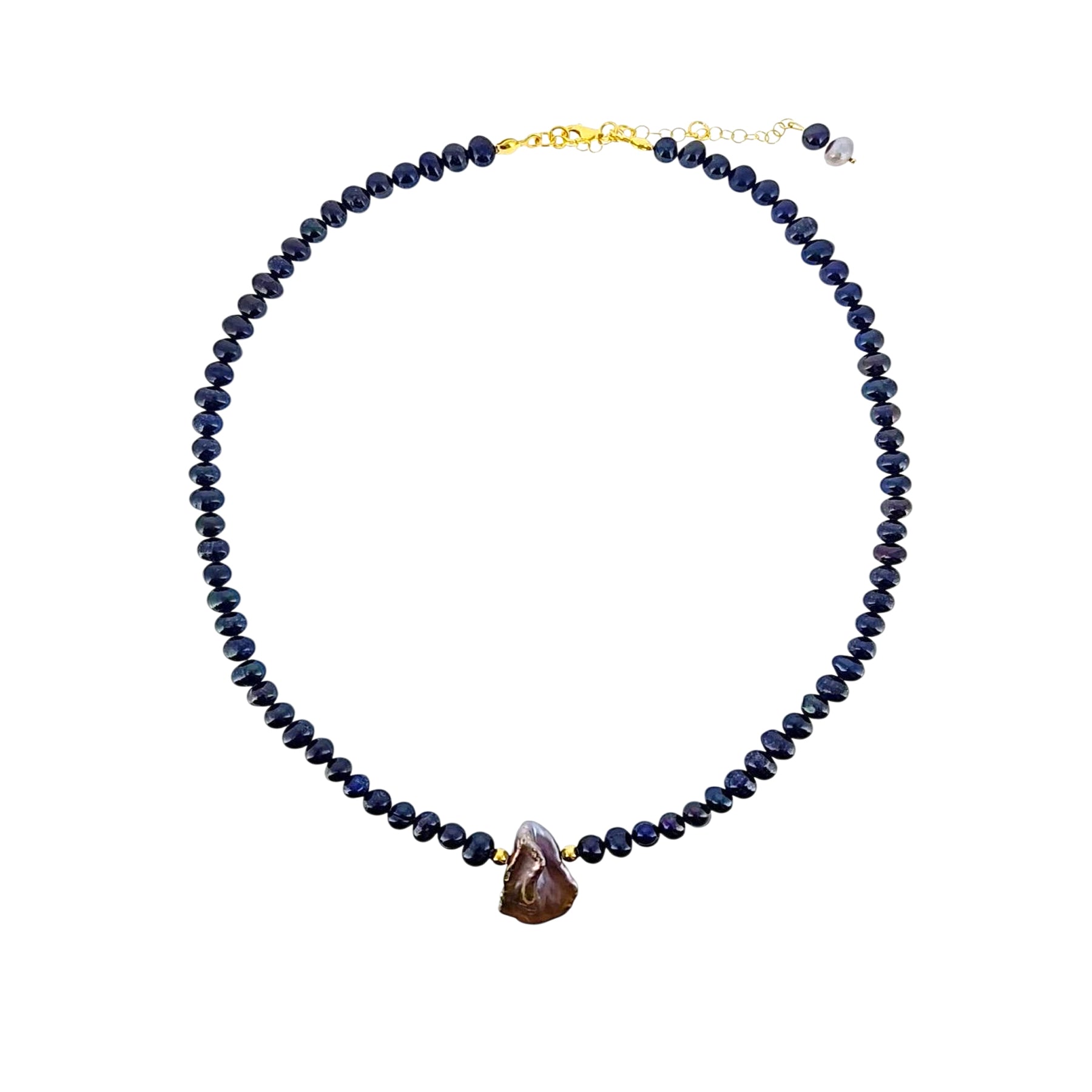 "Nocturne", siyah incilerin dizilimi, ortasında yer alan pembe tonlarındaki barok inciyle güçlü bir kontrast yaratıyor. Bu detay, hem dramatik hem de yumuşak bir ifade sunarak parçaya benzersiz bir karakter kazandırıyor. Minimalist ve şık tasarımıyla Nocturne, geceye dair duyguları stilinizde yansıtmak isteyenler için ideal bir seçim.
