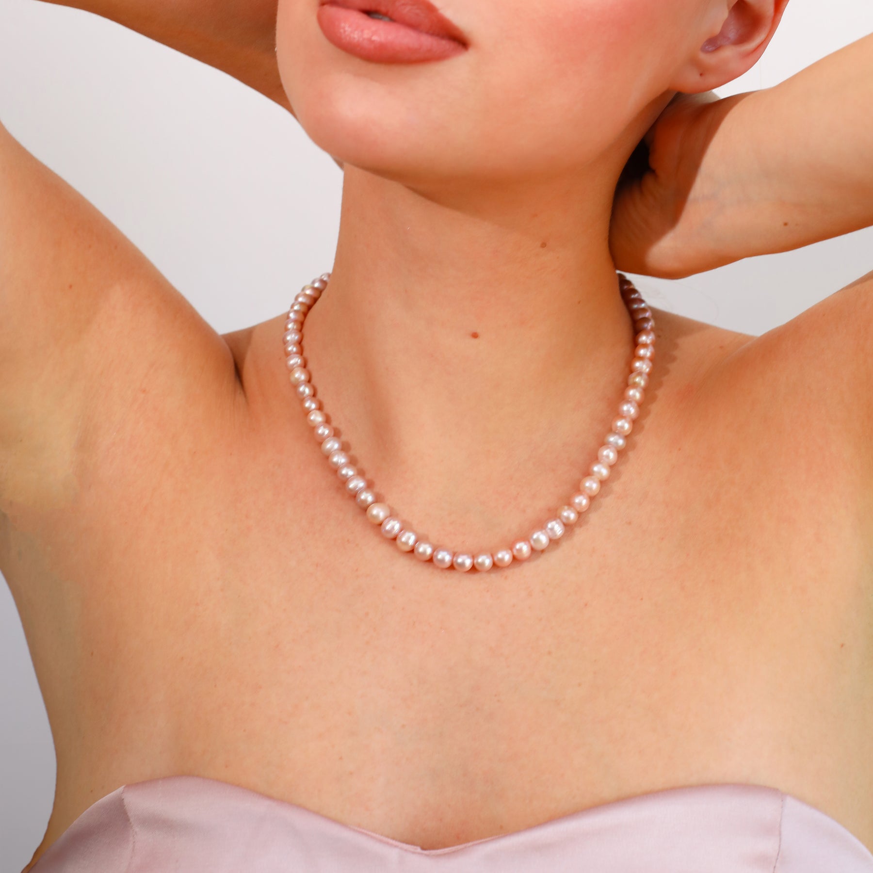 “Roselle” ismi, pembe ve mor tonlarında incilerin, incelikli geçişlerini ve bu renklerin yansıttığı zarafeti ifade eder. Tek sıra formundaki tasarım, renklerin dengeli uyumu ve doğal ışıltısı, Roselle’i hem sade hem de dikkat çekici bir yorum haline getirir.
