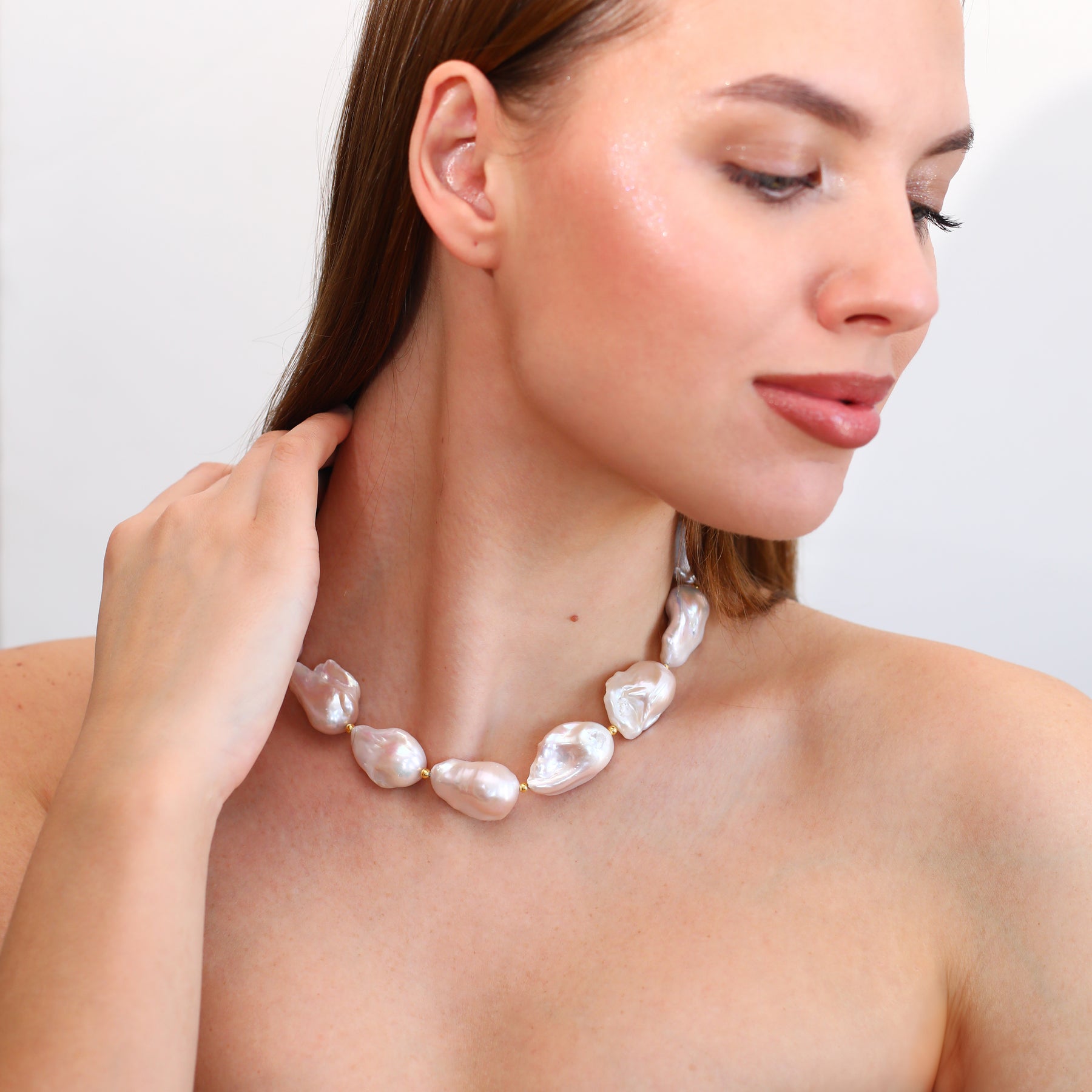 Tasarım gereği inciler arasında gümüş üzerine altın kaplama detaylar kullanılmıştır.